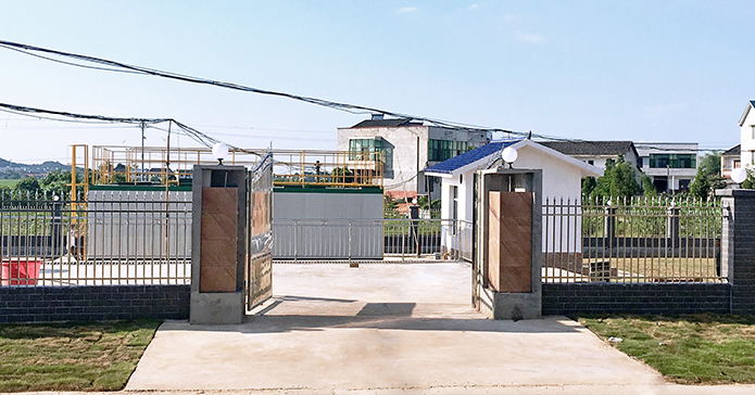 該項目位于湖南省湘潭縣花石鎮(zhèn)和平村茶亭組,采用中天藍瑞環(huán)保科技集團和廣州鵬凱環(huán)境科技股份有限公司E-co Box臥式一體化污水處理裝置,處理能力200噸/日,服務(wù)面積約98000平方米。