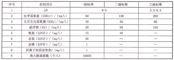出水排入其它水體的處理設(shè)施執(zhí)行二級(jí)標(biāo)準(zhǔn)。其中,規(guī)模大于50m3/d(含)的處理設(shè)施執(zhí)行A標(biāo)準(zhǔn),規(guī)模在50m3/d(不含)-5m3/d(含)的處理設(shè)施執(zhí)行B標(biāo)準(zhǔn)。