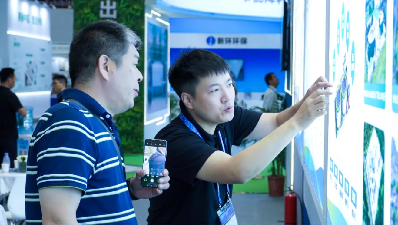 展會現(xiàn)場,鵬凱環(huán)境的展臺吸引了大量觀眾的關(guān)注,特別是其展示的鵬凱圓-低碳高效裝配式污水廠和城市水生態(tài)微循環(huán)系統(tǒng)。