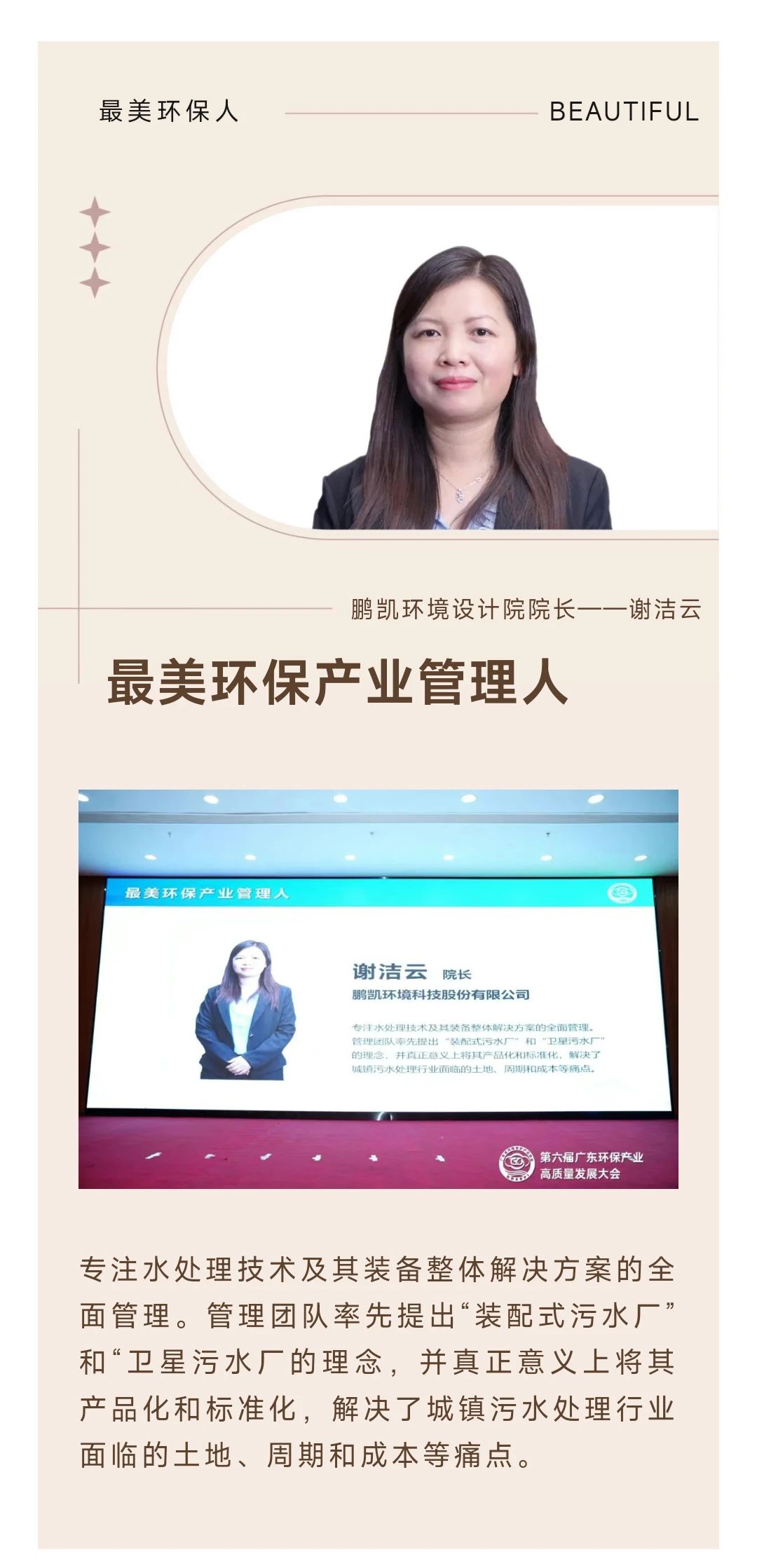 鵬凱環(huán)境設(shè)計(jì)院院長(zhǎng)兼供應(yīng)鏈平臺(tái)總經(jīng)理謝潔云榮獲“最美環(huán)保產(chǎn)業(yè)管理人”稱(chēng)號(hào)