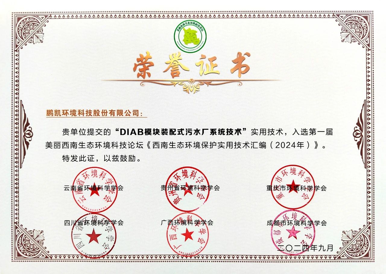 “DIAB模塊裝配式污水廠系統(tǒng)技術(shù)”入選《西南生態(tài)環(huán)境保護(hù)實(shí)用技術(shù)匯編(2024年)》