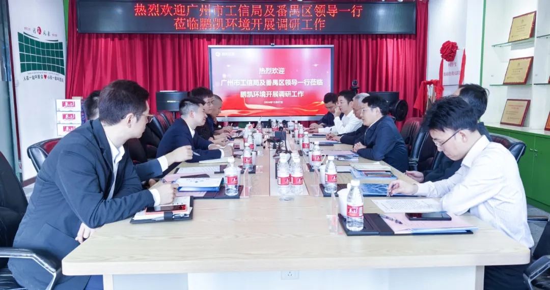 12月7日上午,廣州市工業(yè)和信息化局(以下簡(jiǎn)稱“市工信局”)黨組書記、局長(zhǎng)張建華帶領(lǐng)市工信局、番禺區(qū)委及區(qū)科工商信局等單位調(diào)研組一行共8人,蒞臨鵬凱環(huán)境調(diào)研訪問。鵬凱環(huán)境董事長(zhǎng)兼總裁王國(guó)彬陪同調(diào)研,并就公司的生產(chǎn)經(jīng)營(yíng)狀況及當(dāng)前面臨的挑戰(zhàn)等方面進(jìn)行了詳盡的匯報(bào)。