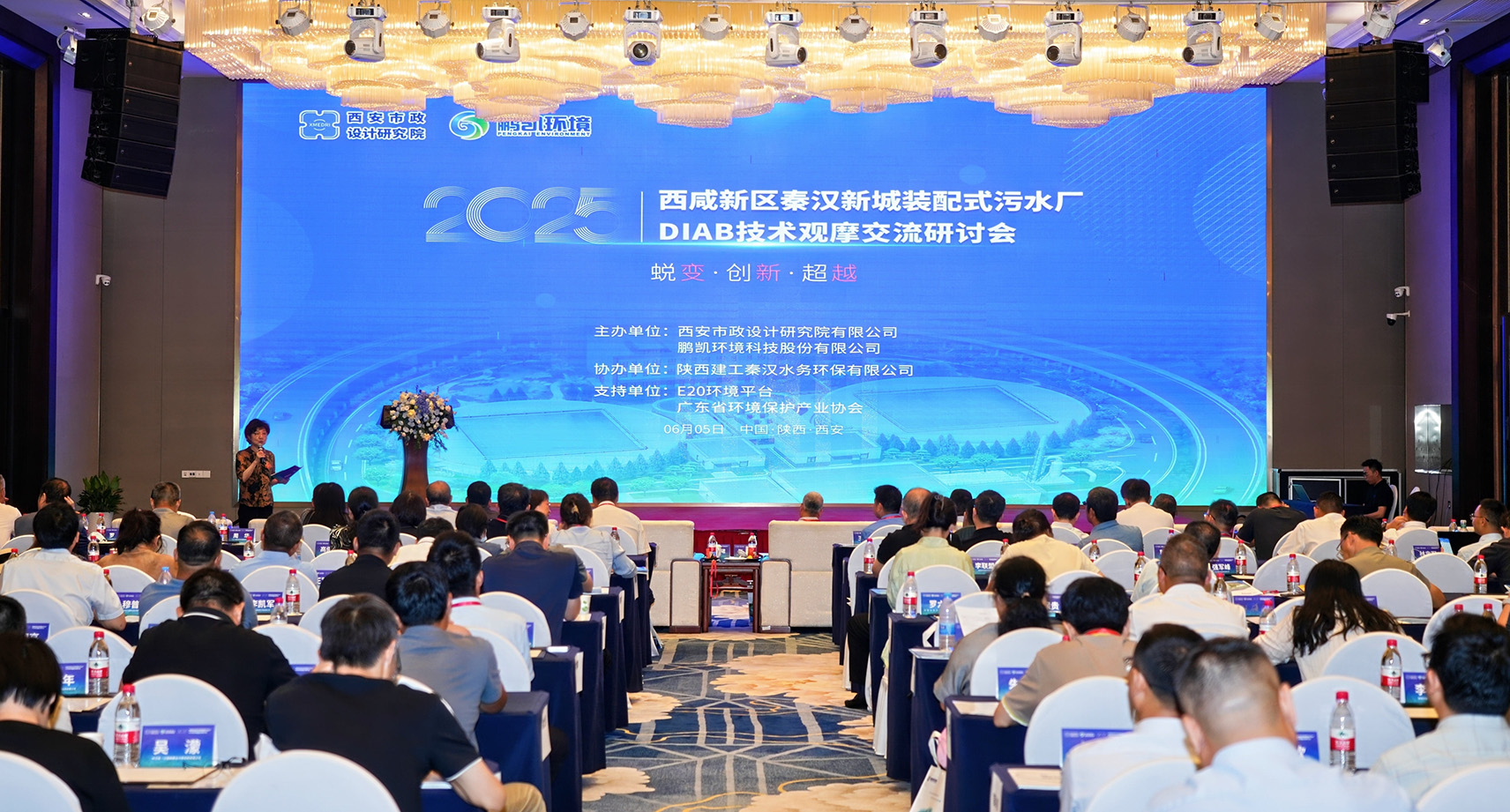 ·創(chuàng)·超。6月5日下午,由西安市政設(shè)計(jì)研究院有限公司、鵬凱環(huán)境科技股份有限公司聯(lián)合舉辦的“西咸新區(qū)秦漢新城裝配式污水廠DIAB技術(shù)觀摩交流研討會(huì)”在千年古都西安盛大啟幕。會(huì)議圍繞 “雙碳戰(zhàn)略” 下污水處理技術(shù)創(chuàng)新發(fā)展、DIAB4.0裝配式污水廠技術(shù)的創(chuàng)新與實(shí)踐等核心議題,共探行業(yè)技術(shù)革新與綠色轉(zhuǎn)型發(fā)展新路徑。
