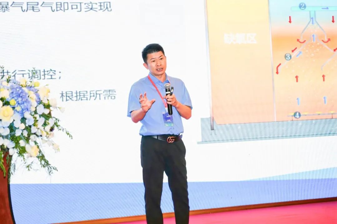 華南理工大學(xué)環(huán)境與能源學(xué)院教授、鵬凱環(huán)境集團(tuán)研究院院長胡勇有《側(cè)循環(huán)好氧三相分離多級(jí)AO污水處理系統(tǒng)4.0》主題演講,圍繞沉水園項(xiàng)目側(cè)循環(huán)A/O/O污水處理系統(tǒng),分析運(yùn)行效果、工藝機(jī)理,并提出結(jié)構(gòu)優(yōu)化和生物強(qiáng)化等調(diào)控策略。并從結(jié)構(gòu)優(yōu)化、功能強(qiáng)化及智能化提升等方面詳細(xì)介紹鵬凱圓DIAB反應(yīng)器1.0~4.0迭代升級(jí),以科技創(chuàng)新賦能污水處理技術(shù)低碳高效發(fā)展。